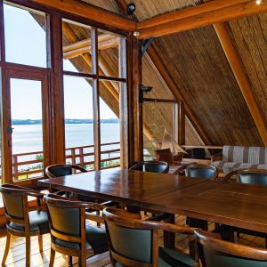 Disfruta de nuestra espectacular terraza, con una hermosa vista a la península de Lacuy, donde podrás brindar y admirar el atardecer. Podrás elegir nuestros hermosos jardines, donde sentirás la magia y el encanto de la naturaleza de Chiloé.